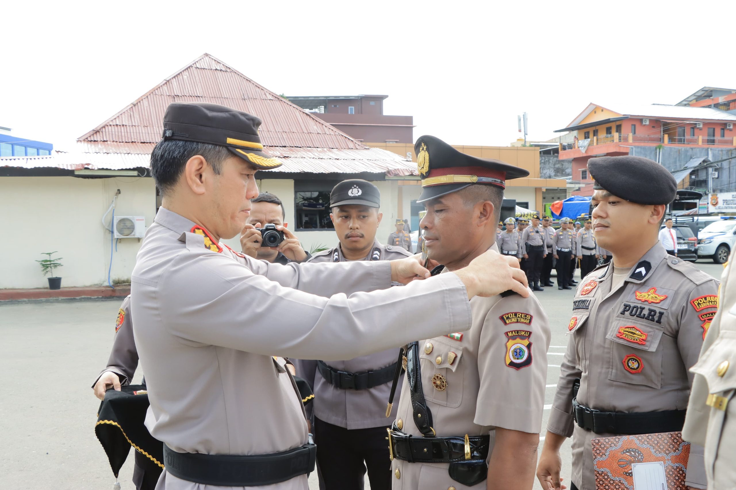 Kapolresta Ambon juga mengucapkan selamat kepada para pejabat baru, AKP Aditya Bambang Sundawa, S.Tr.K., S.I.K., yang ditunjuk sebagai Kapolsek KPYS dan kepada Iptu Aris yang dilantik sebagai Kapolsek Salahutu.