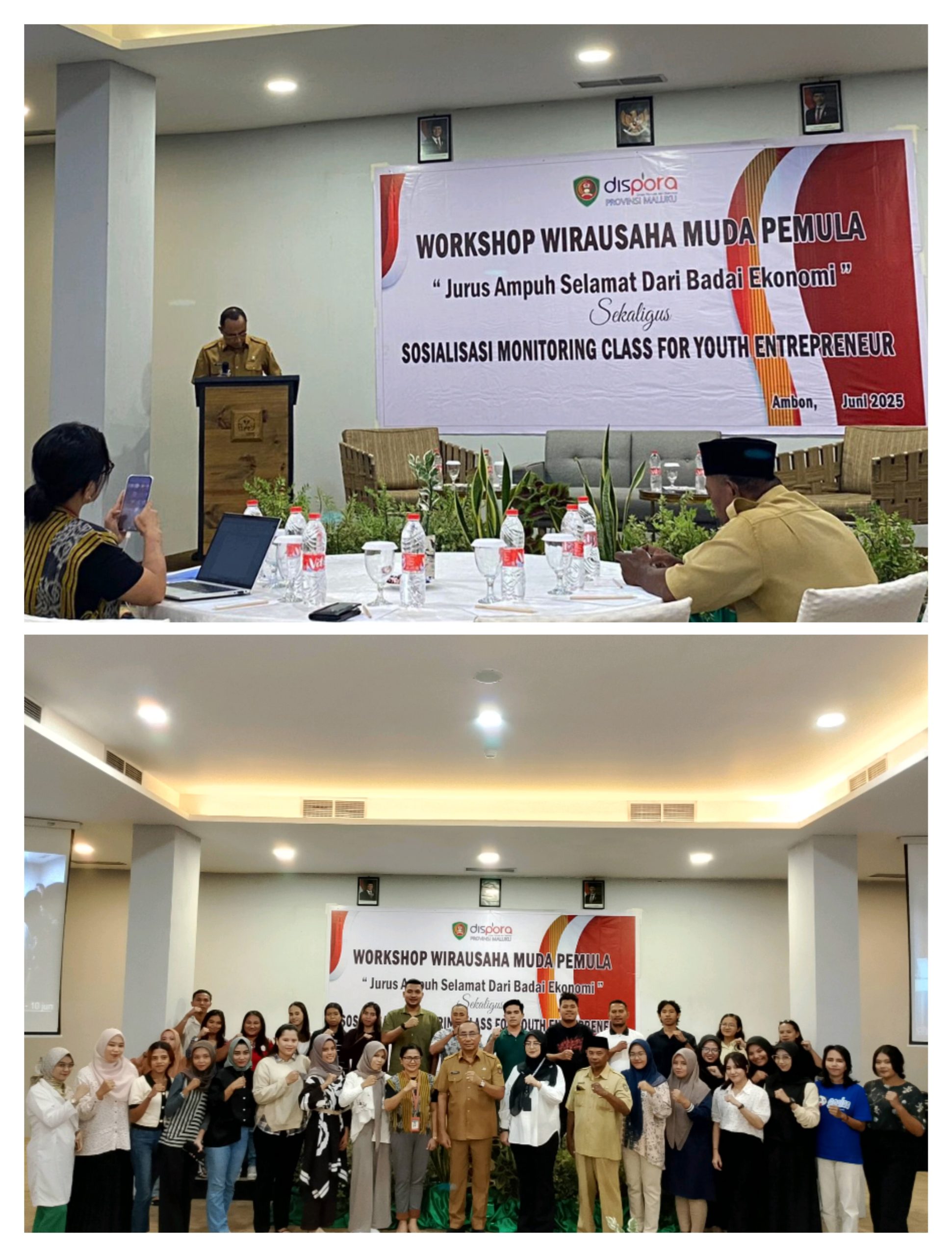 SNI.ID, AMBON : Dinas Pemuda dan Olahraga (Dispora) Provinsi Maluku menggelar Workshop Wirausaha Muda Pemula bertajuk “Jurus Ampuh Selamat dari Badai Ekonomi” yang sekaligus dirangkaikan dengan Sosialisasi Monitoring Class for Youth Entrepreneur, Selasa (10/6/25). Kegiatan ini secara resmi dibuka oleh Kepala Dispora Maluku, Sandi Wattimena.
