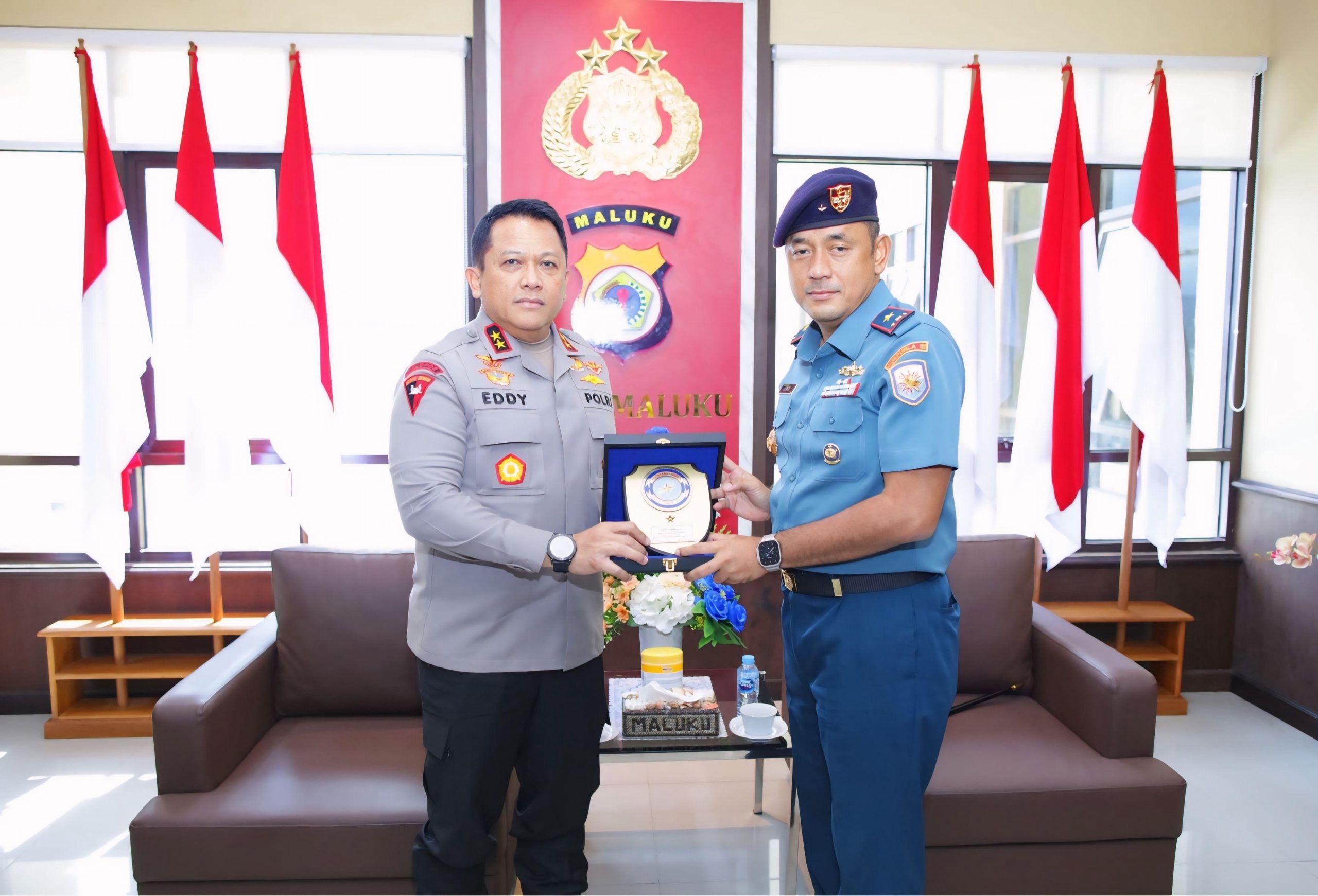 SNI.ID, AMBON : Kepala Kepolisian Daerah Maluku, Irjen Pol. Drs. Eddy Sumitro Tambunan, M.Si, menerima kunjungan dari Komandan Guspurla Koarmada III, Laksamana Pertama TNI Lewis N. Nainggolan.