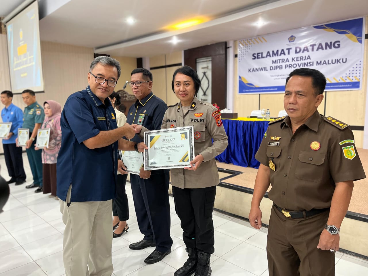 Kepala Kantor Wilayah DJPb Provinsi Maluku, Anang Rohmawan, secara langsung menyerahkan penghargaan tersebut yang diterima oleh Kaurapk Subbidbia dan APK Bidang Keuangan Polda Maluku, Kompol Helda Mosse Siwabessy, S.H., M.H.