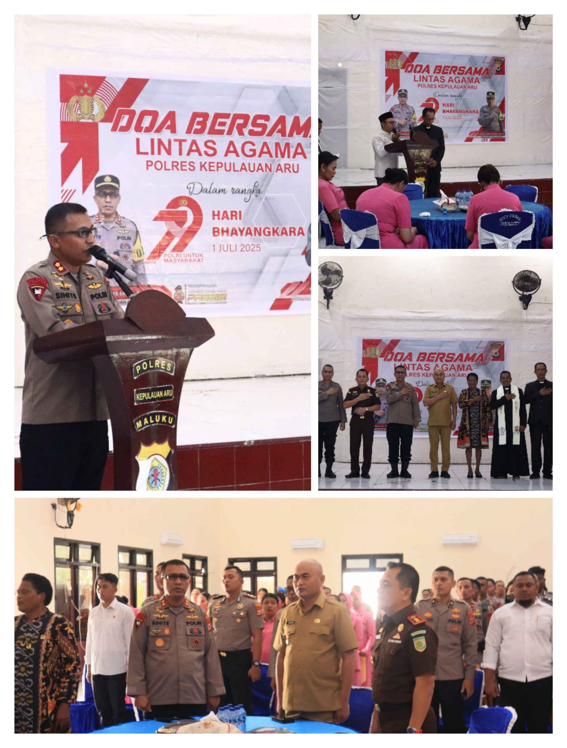 SNI.ID, Dobo – Dalam rangka menyambut Hari Bhayangkara ke-79 yang jatuh pada 1 Juli 2025, Polres Kepulauan Aru menggelar kegiatan Doa Bersama Lintas Agama pada Senin (30/6/2025), bertempat di Aula Ursia Urlima, Mako Polres Kepulauan Aru. Kegiatan ini menjadi penutup rangkaian perayaan Hari Bhayangkara tahun ini.