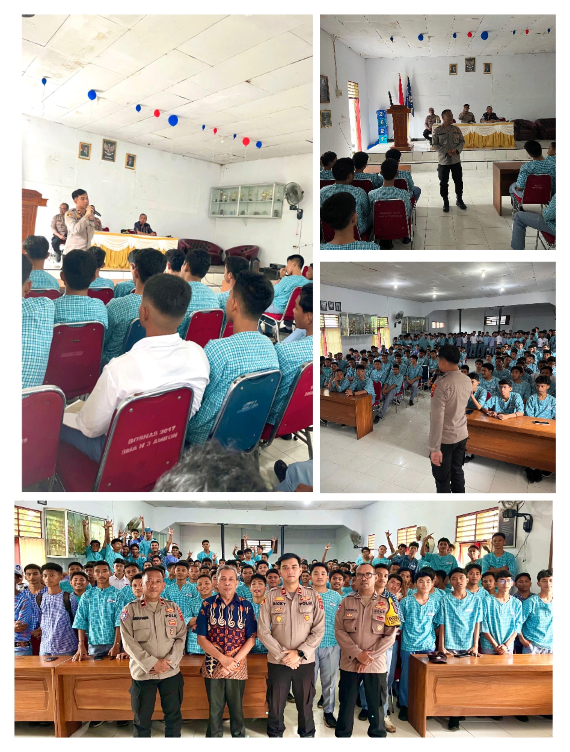 SNI.ID, AMBON : Kapolsek Teluk Ambon, IPTU M. Maulana Dicky, S.Tr.K bersama Kanit Binmas IPDA Burhan Nawir menggelar sosialisasi dampak tawuran antar pelajar di SMA Negeri 3 Ambon, Negeri Rumahtiga, Kecamatan Teluk Ambon, Kamis (21/8).