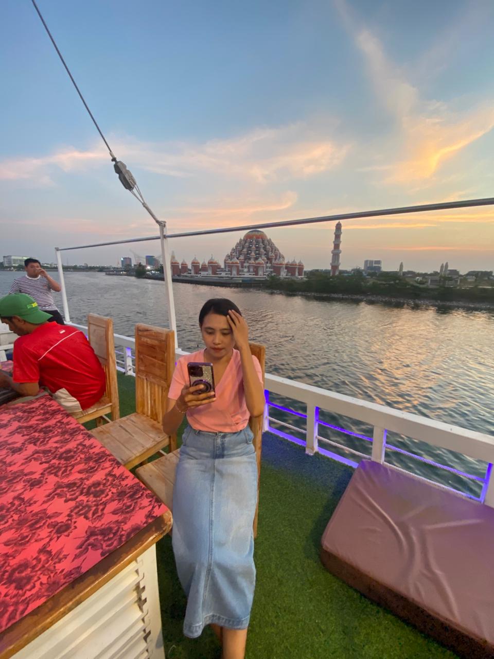 Pada Kamis (9/10/2025), sejumlah wartawan berkesempatan menikmati perjalanan di atas kapal tersebut. Dengan latar pemandangan laut yang tenang, gemerlap cahaya kota, dan alunan musik lembut, suasana di atas kapal terasa begitu syahdu. Di atas dek, para tamu disuguhi makan malam bersama dalam suasana penuh keakraban.