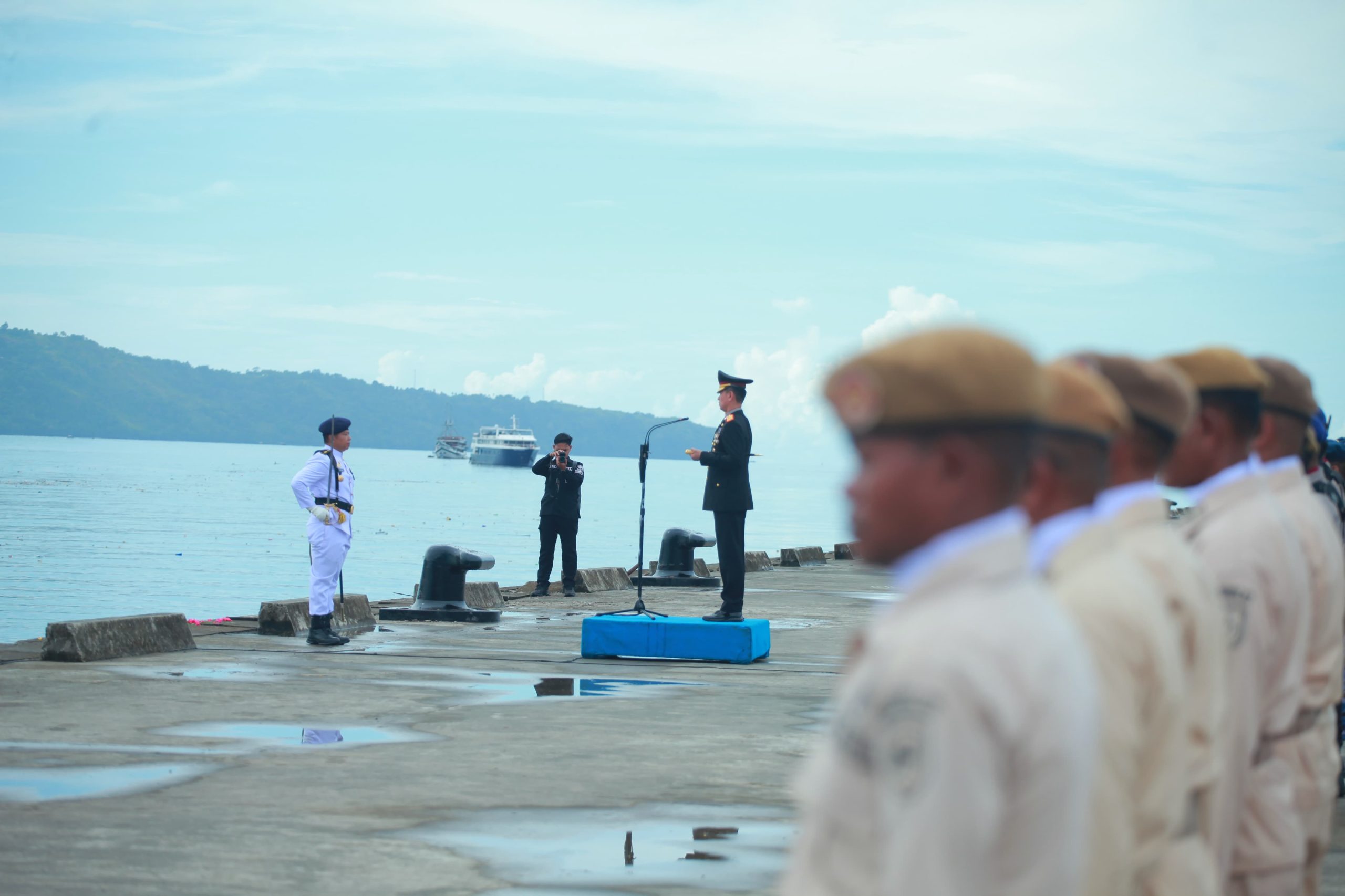 Upacara yang digelar di Dermaga Tawiri Kodair IX Ambon pada pukul 09.00 WIT tersebut dipimpin oleh Kepala Kepolisian Daerah (Kapolda) Maluku Irjen Pol Prof. Dr. Dadang Hartanto, S.H., S.I.K., M.Si. selaku Inspektur Upacara. Sedangkan Mayor Laut (E) Acmad Mayuradha bertugas sebagai Komandan Upacara.