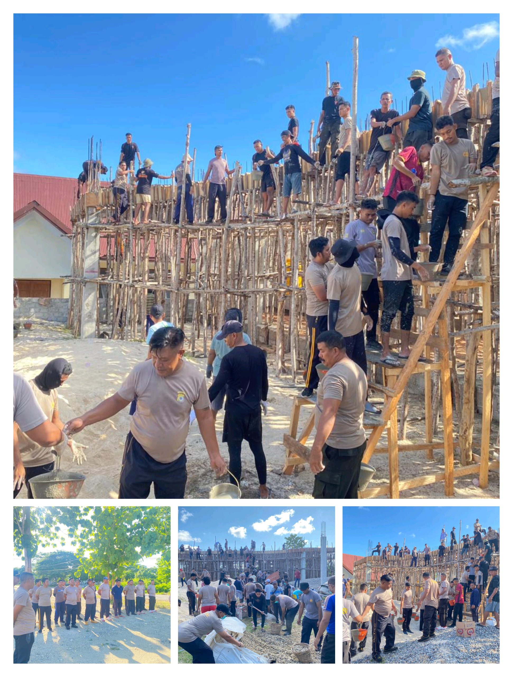 Sejak pukul 08.00 WIT, puluhan personel kepolisian bersama jemaat gereja terlibat dalam pengecoran pembangunan gedung baru tersebut.