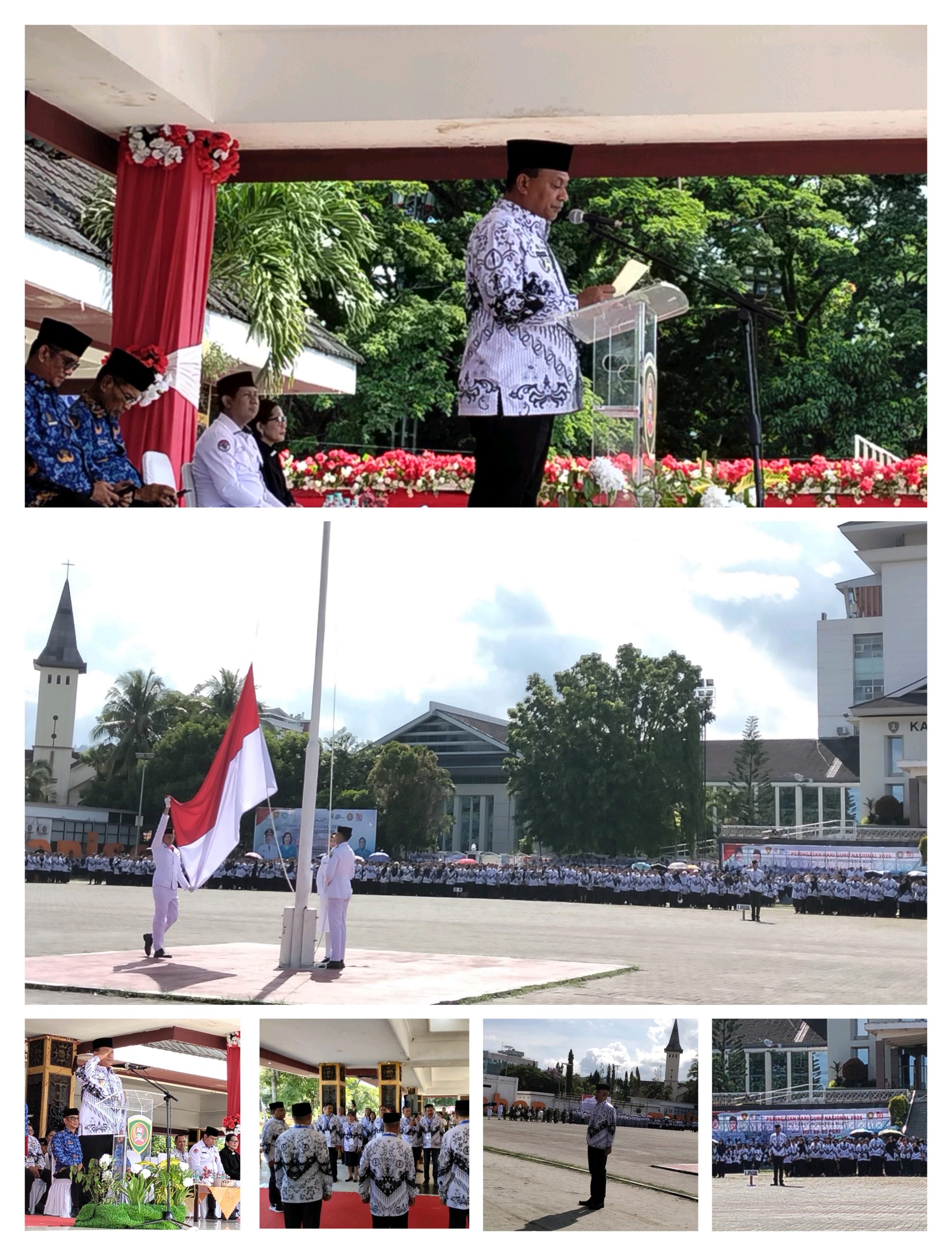 Dalam upacara tersebut, Gubernur membacakan sambutan tertulis Menteri Pendidikan Dasar dan Menengah RI, Prof. Dr. Abdul Mu’ti, M.Ed. Menteri menegaskan bahwa Hari Guru Nasional harus menjadi momentum memperkuat kembali peran guru sebagai pilar pendidikan dan peradaban bangsa.