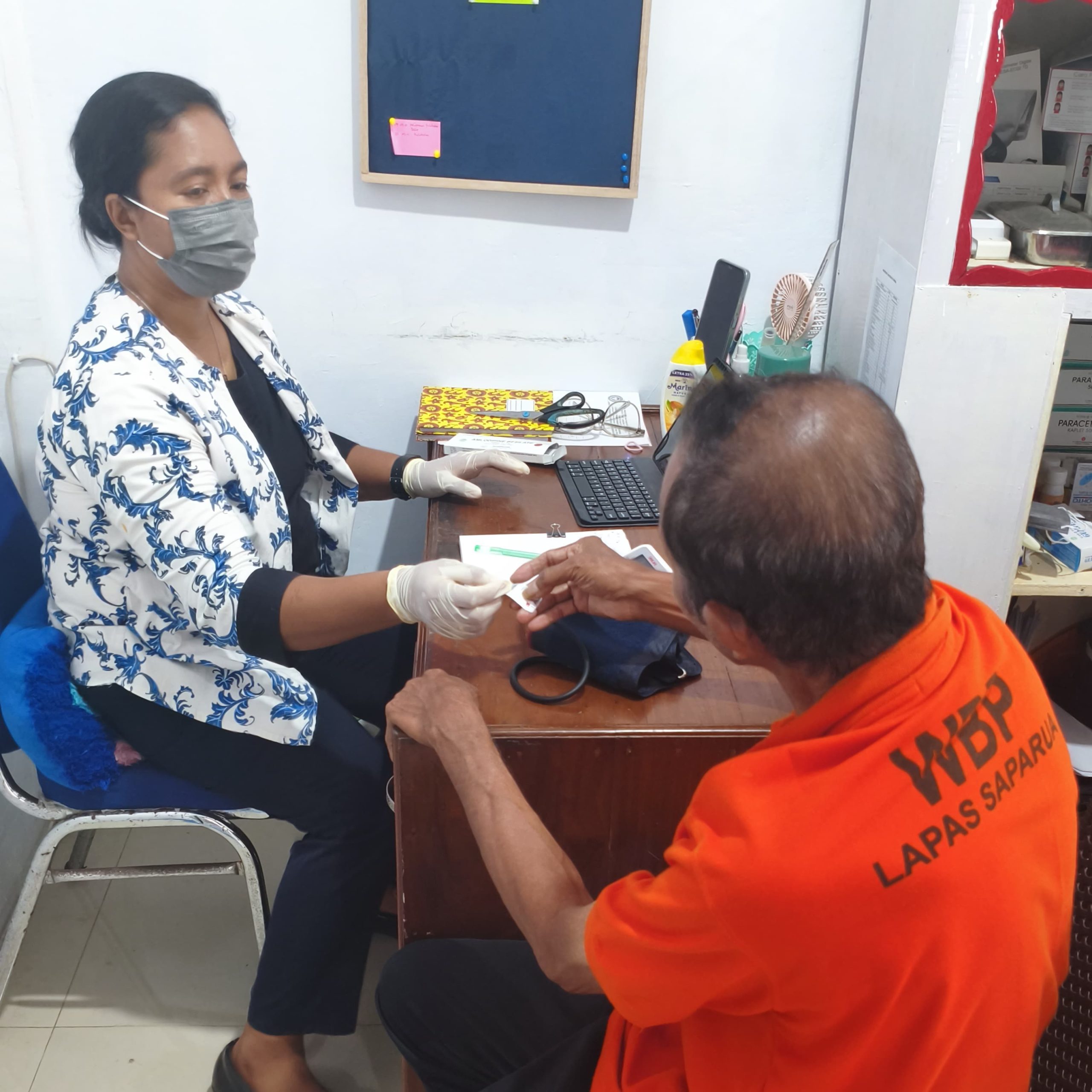 “Dari hasil pemeriksaan, terdapat tiga orang warga binaan dengan tekanan darah di atas normal, yakni 140/80 mmHg dan 150/90 mmHg. Selain itu, satu orang warga binaan mengeluhkan gatal-gatal pada kulit,” jelas Senly.