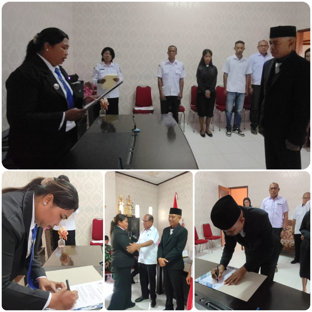 Pelantikan berlangsung dalam suasana sederhana namun penuh hikmat di ruang pimpinan Kecamatan Saparua, Rabu (8/4/2026).