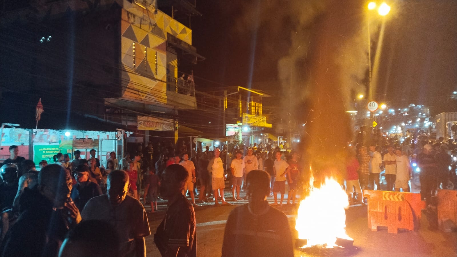 Aksi berlangsung sekitar pukul 22.59 WIT. Massa yang merupakan bagian dari Keluarga Hatala mulai berkumpul sejak pukul 22.55 WIT. Warga kemudian memasang portal pembatas jalan dan membakar ban di tengah ruas jalan sehingga mengganggu kelancaran arus lalu lintas.