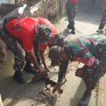 Personel Babinsa Kerja Bakti dengan Warga Perbaiki Jalan Rusak