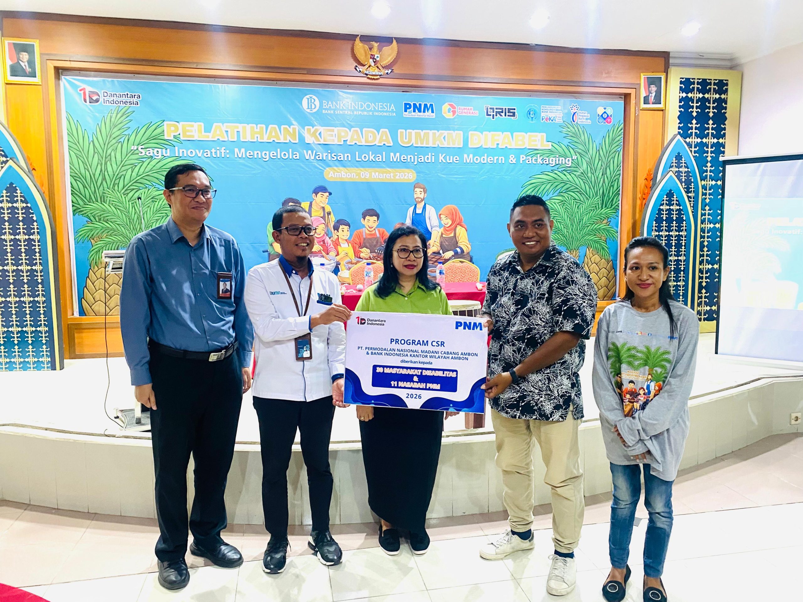 SNI.ID, AMBON : Kolaborasi antara PT Permodalan Nasional Madani (PNM), Bank Indonesia, dan Yayasan Rumah Generasi menghadirkan program Madani Empowerpreneur, Difabel Bisa Berusaha bertema “Sagu Inovatif: Mengelola Warisan Lokal menjadi Kue Modern dan Packaging” di Aula Kantor Bank Indonesia, Ambon, Rabu (11/3/26).