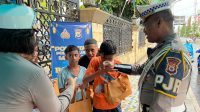 Diguyur Hujan, Polantas Polda Maluku Tetap Berbagi Takjil untuk Pengendara di Hari Ketiga Ramadhan